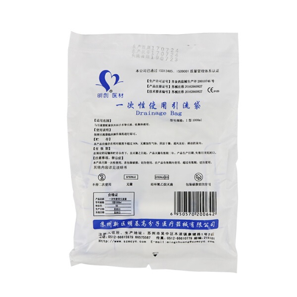 明创 一次性导尿袋 1000毫升防逆流(10个)