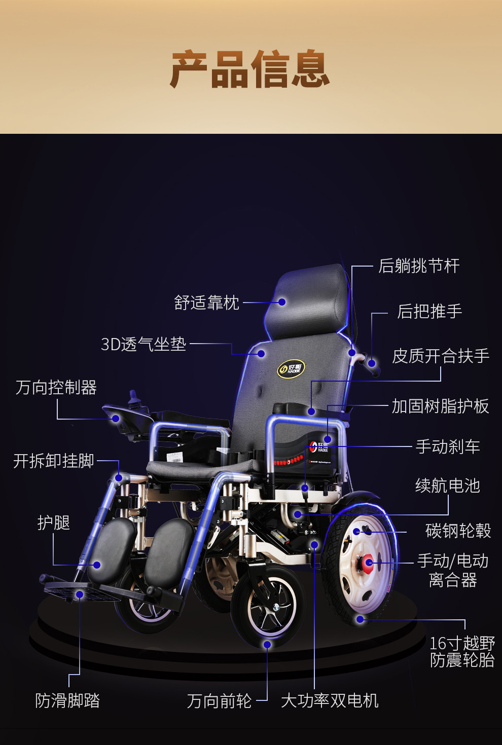 好哥 电动轮椅 轻便可折叠减震 铅酸锂电池20Ah 舒适续航款