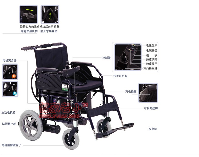 互邦电动轮椅(HBLD2-A型)采用加厚定制的电动轮椅专用的花鼓与电机轴配合充分保证强度