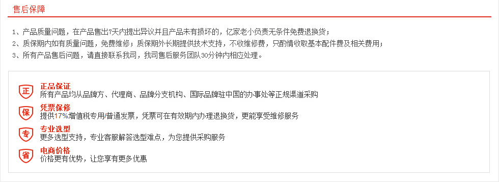 注: 产品质量问题,在产品售出7天内提出异议并且产品未有损坏的,亿家老小负责无条件免费退换货;质保期内如有质量问题,免费维修;质保期外长期提供技术支 持,不收维修费,只酌情收取基本配件费及相关费用;所有产品售后问题,请直接联系我司(7x24小时热线:400-027-9875),我司售后服务团队 30分钟内相应处理。