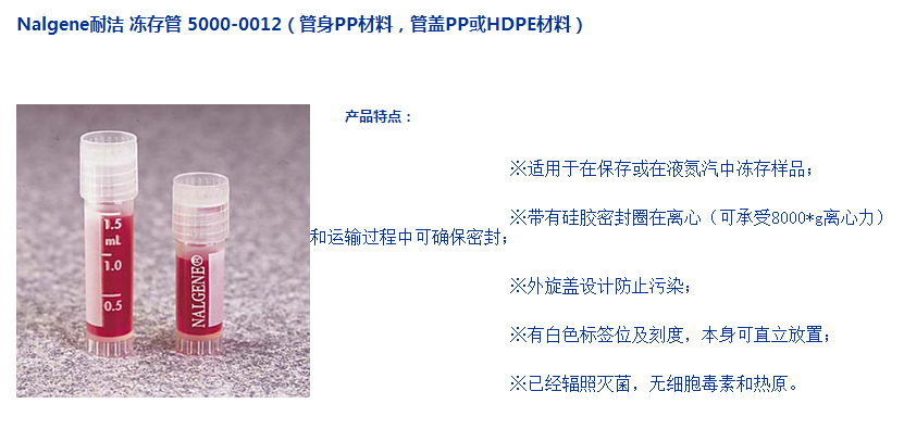 Nalgene耐洁 冻存管 5000-0012(管身PP材料,管盖PP或HDPE材料)