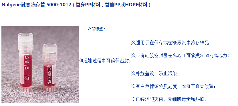 Nalgene耐洁 冻存管 5000-1012(管身PP材料,管盖PP或HDPE材料)