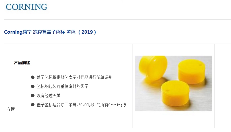 Corning康宁 冻存管盖子色标 黄色 (2019)