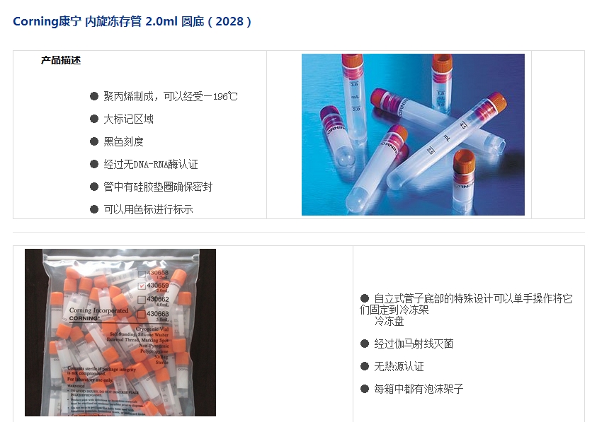 Corning康宁 内旋冻存管 2.0ml 圆底(2028)
