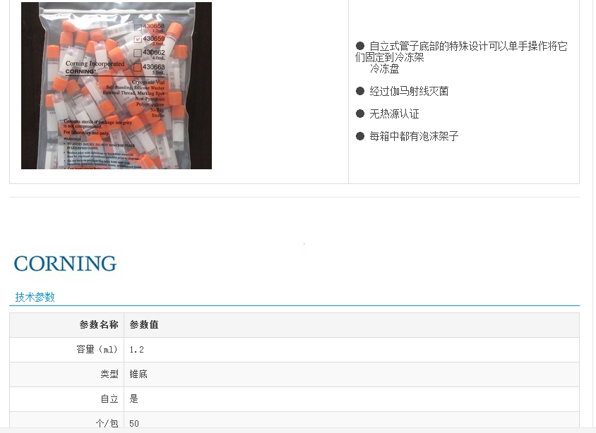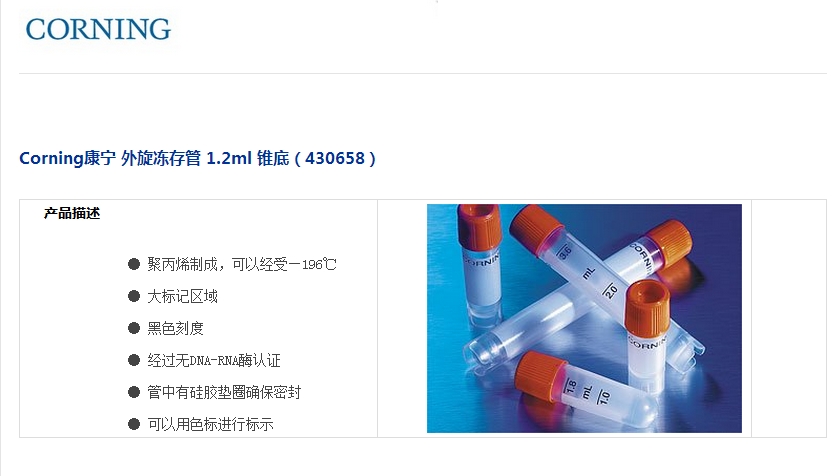 Corning康宁 外旋冻存管 1.2ml 锥底(430658)