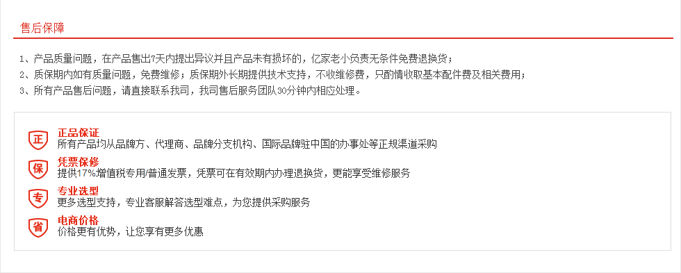 注: 产品质量问题,在产品售出7天内提出异议并且产品未有损坏的,亿家老小负责无条件免费退换货;质保期内如有质量问题,免费维修;质保期外长期提供技术支 持,不收维修费,只酌情收取基本配件费及相关费用;所有产品售后问题,请直接联系我司(7x24小时热线:400-027-9875),我司售后服务团队 30分钟内相应处理。