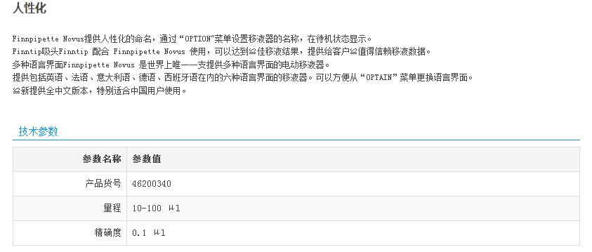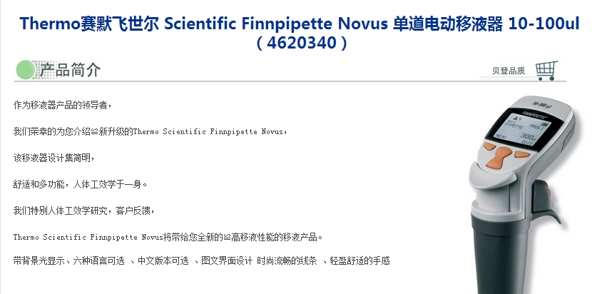 Thermo赛默飞世尔 Scientific Finnpipette Novus 单道电动移液器 10-100ul (4620340)