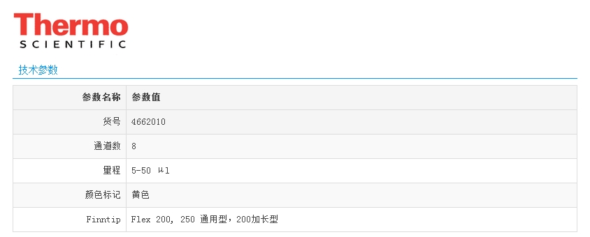 Thermo Scientific赛默飞 Finnpipette F2 八道移液器 黄色 50ul (4662010)