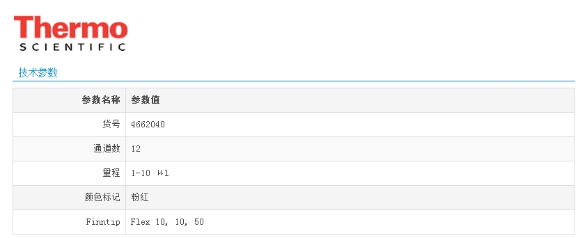 Thermo Scientific赛默飞 Finnpipette F2 十二道移液器 粉色 10ul (4662040)