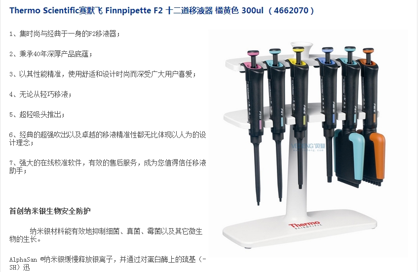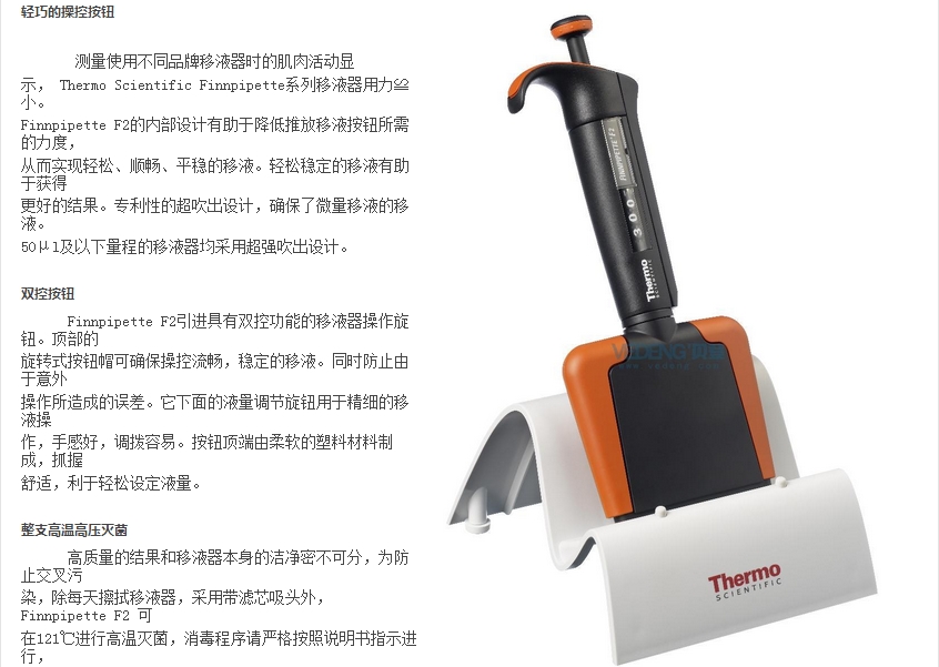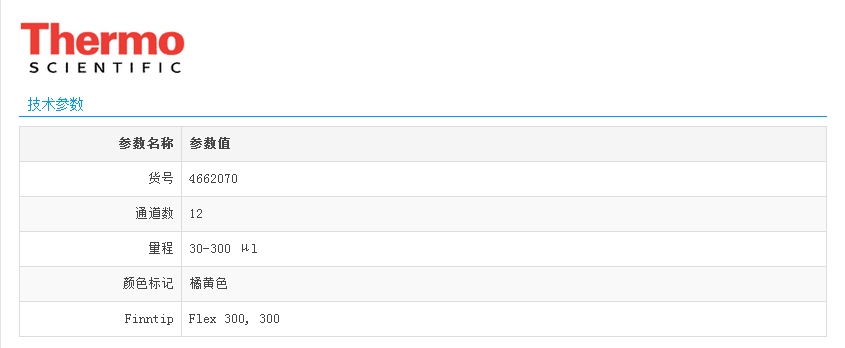 Thermo Scientific赛默飞 Finnpipette F2 十二道移液器 橘黄色 300ul (4662070)