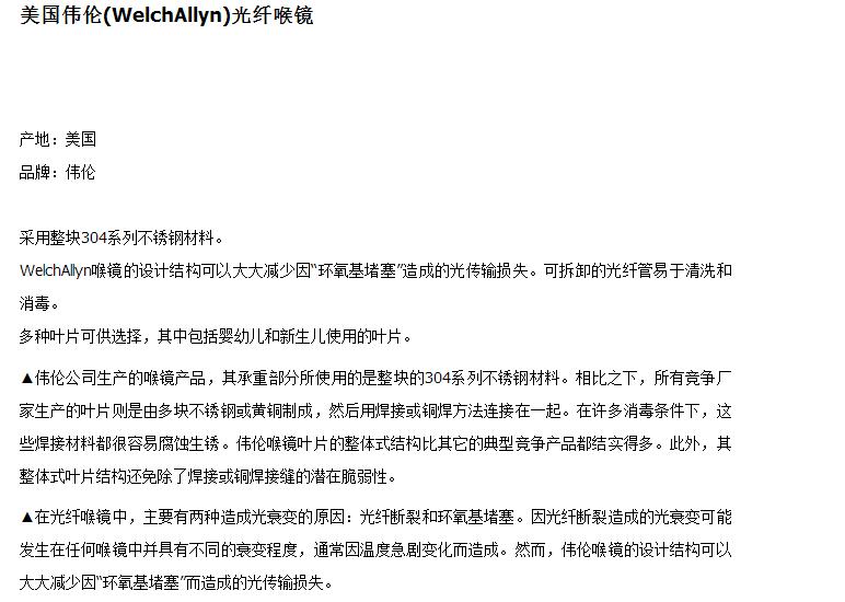 美国伟伦(WelchAllyn)光纤喉镜