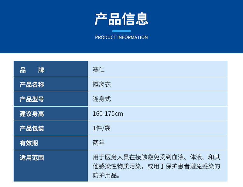 赛仁 一次性医用隔离衣 连身式(160-175-cm)