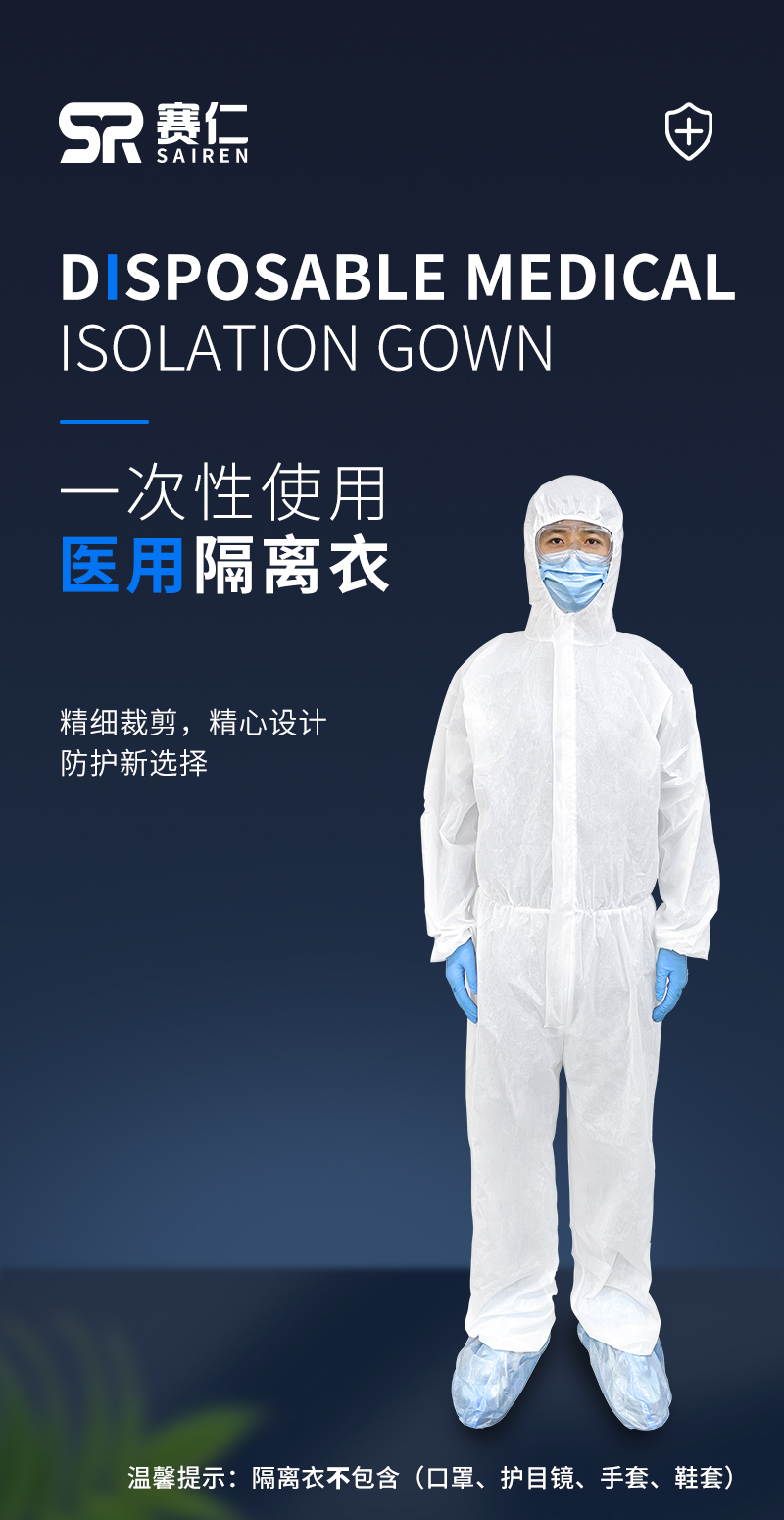 赛仁 一次性医用隔离衣 连身式 XXL(183-190cm)