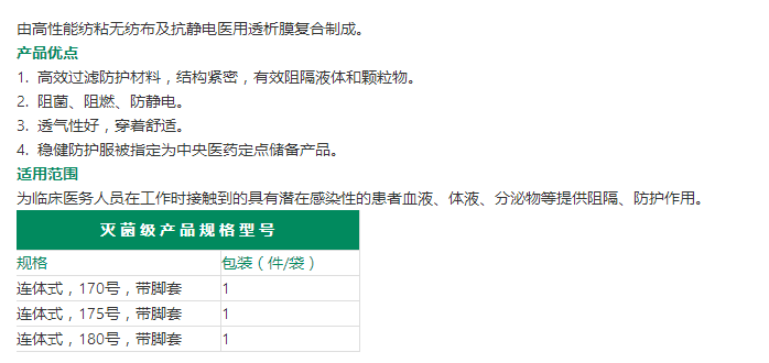 稳健医疗 医用一次性防护服