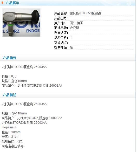 史托斯(STORZ)腹腔镜 26003AA