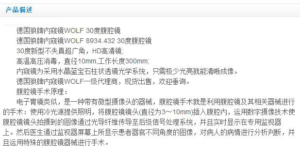 德国狼牌内窥镜WOLF 30度腹腔镜