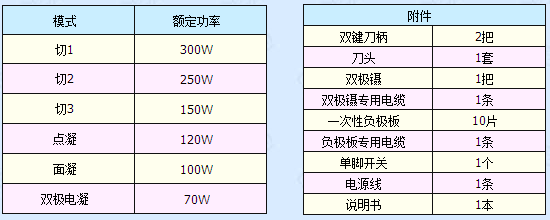每路单极输出包括切1、切2、切3、点凝、面凝、双极电凝六种工作模式;