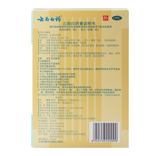 云南白药膏贴 10贴