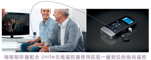 瑞声达瑞朗(Alera)系列全智能无线助听器将闪耀登场,在保持了对言语声和噪声处理水平的基础之上,将无线通讯芯 片植入助听器中,使用目前市场上 的2.4GHz数字无线传输技术,将高保真、无衰减的电子声信号直接接收入助听器,而不必佩戴任何附属品,解决用户了在接收电子声信号,如电视、 电话、音响、MP3时的困扰。 |