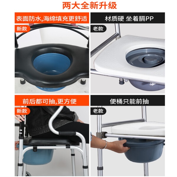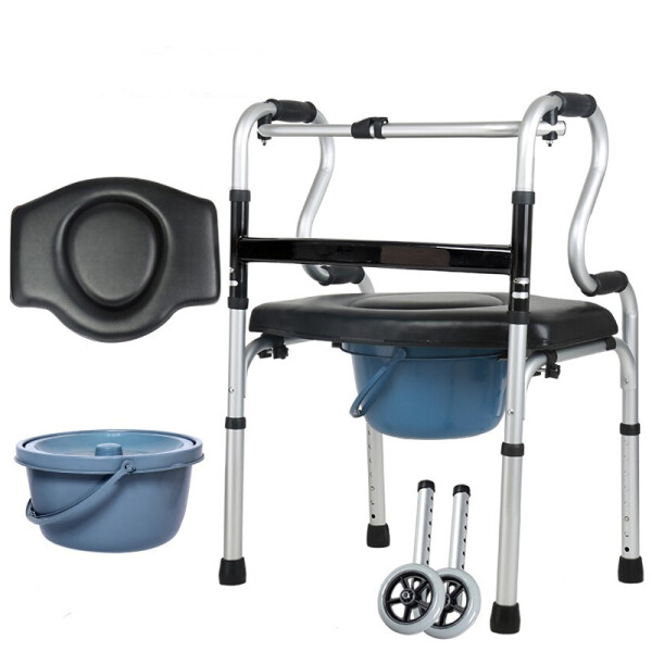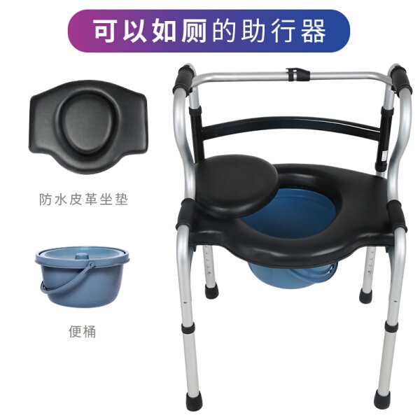 雅德 铝合金助行器 四脚拐杖坐便椅 坐浴软垫+便桶+两轮 YC8307