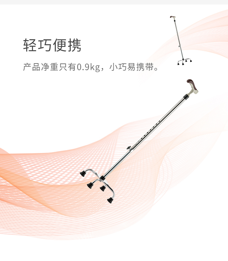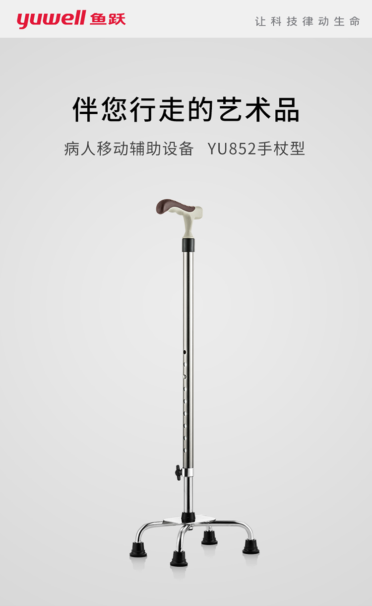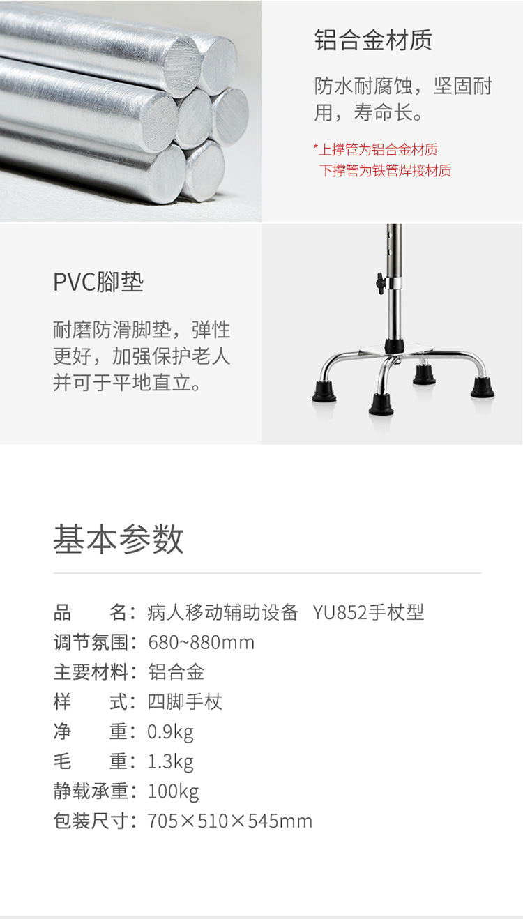 鱼跃 拐杖YU852 铝合金 可伸缩拆卸四脚防滑
