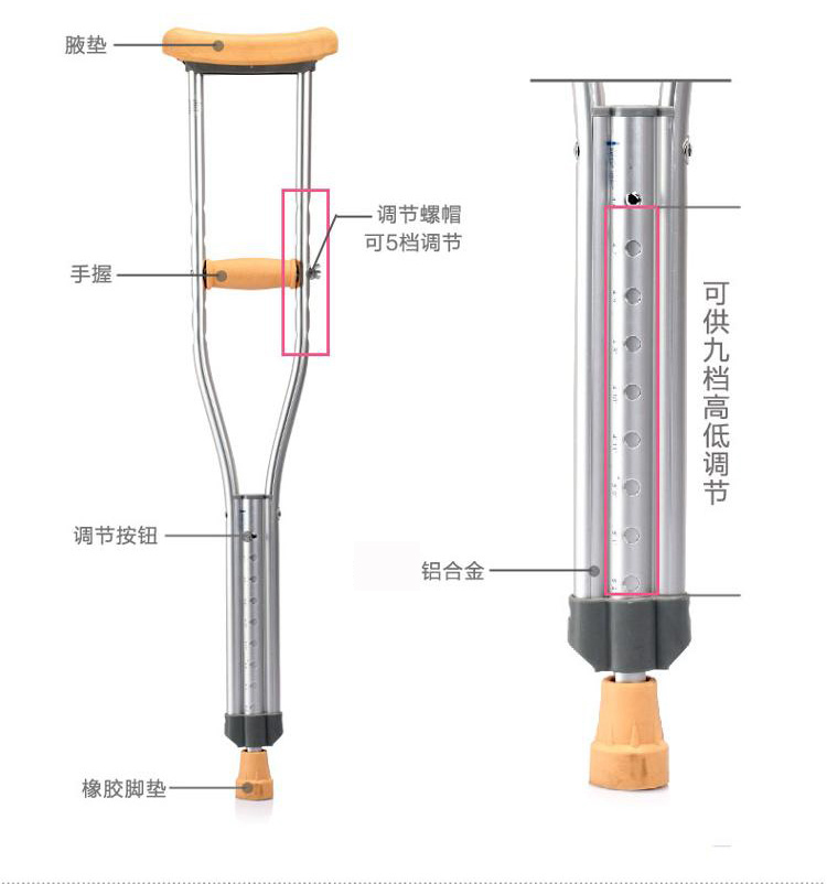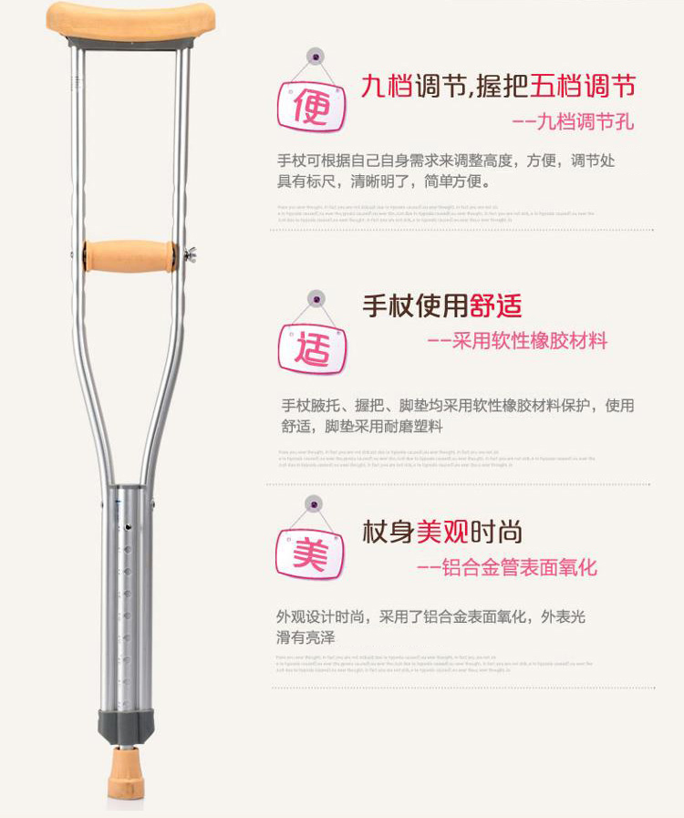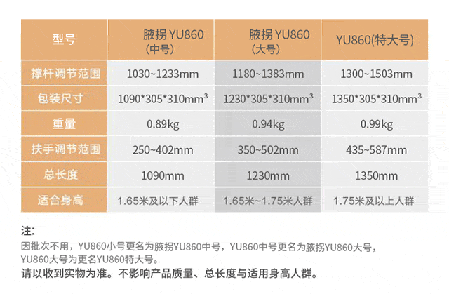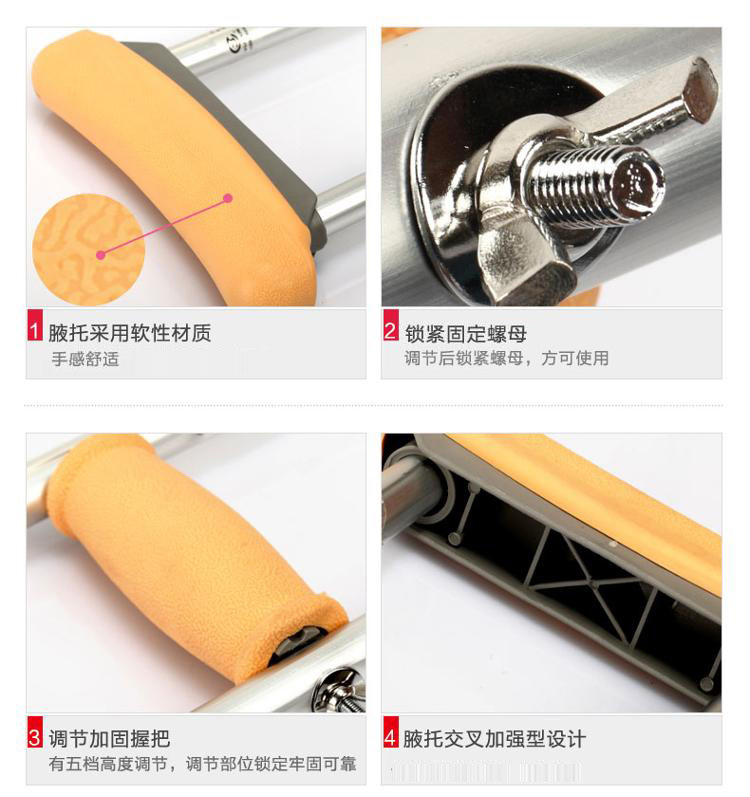 鱼跃 铝合金腋下拐杖 YU860 大号2只(适合165cm-175cm身高)