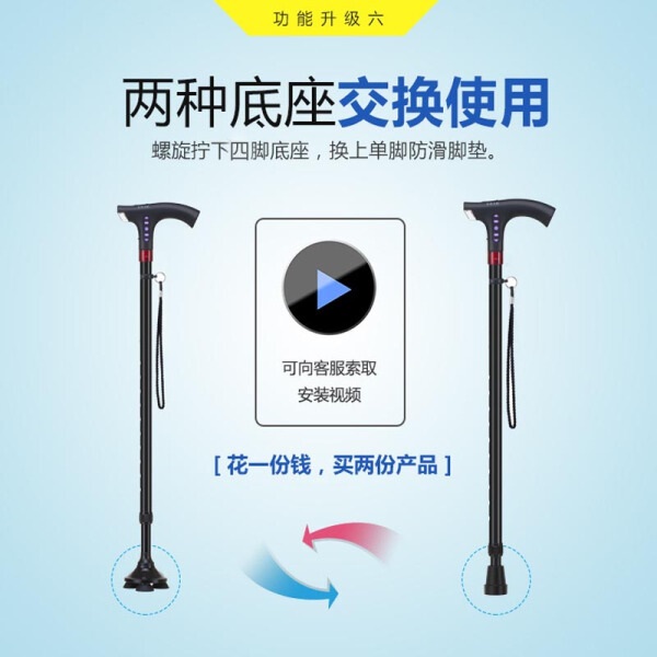 康诺利 CONNOLLY 多功能智能老人拐杖 收音机报警照明-四脚