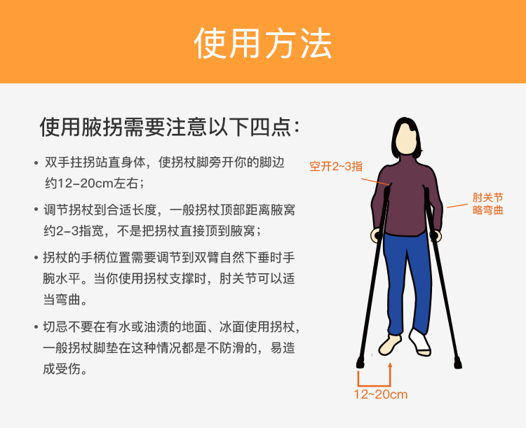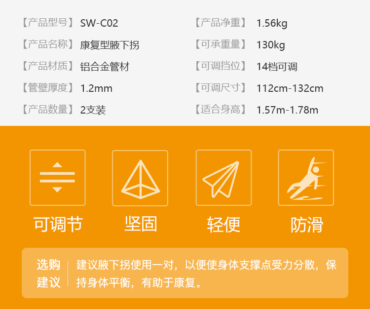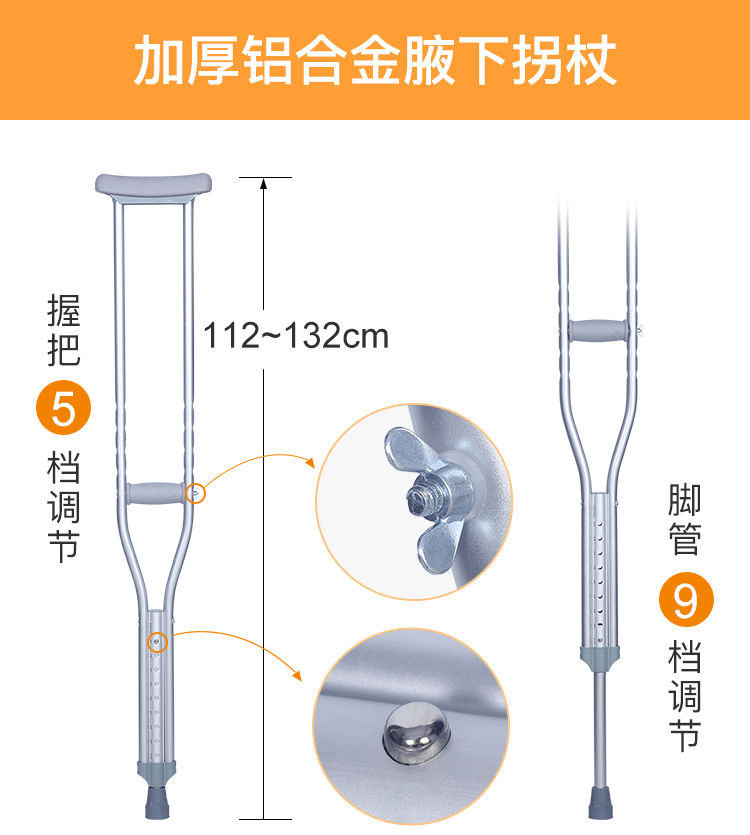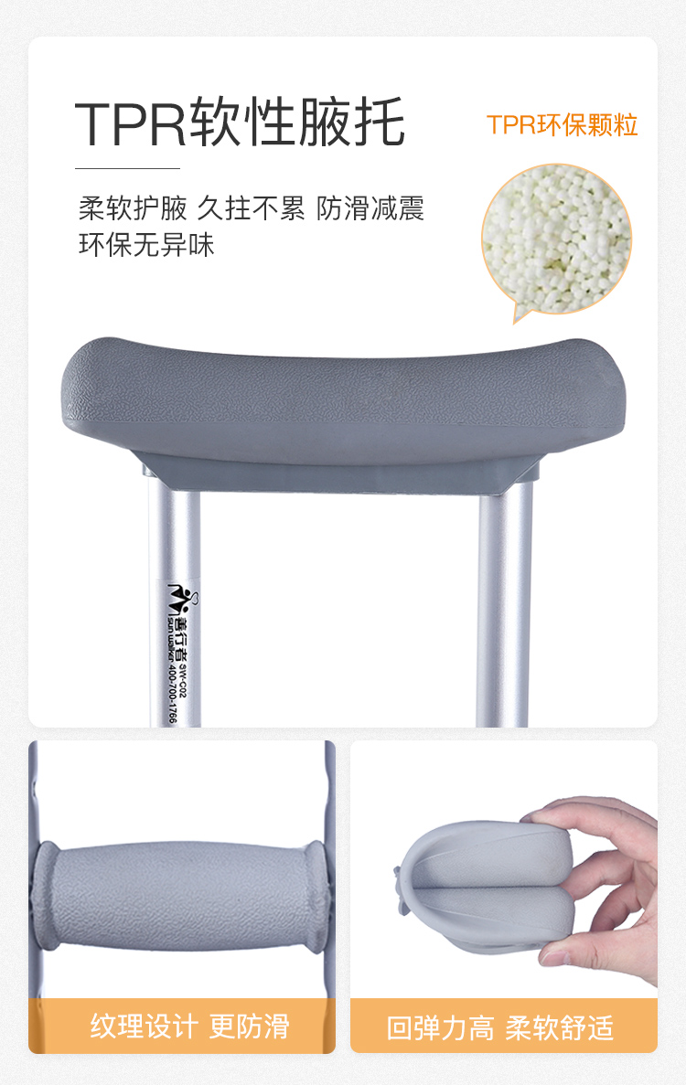善行者 加厚腋下拐杖(两支) 铝合金防滑可伸缩SW-C02