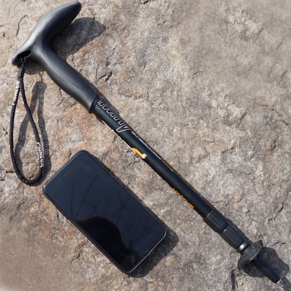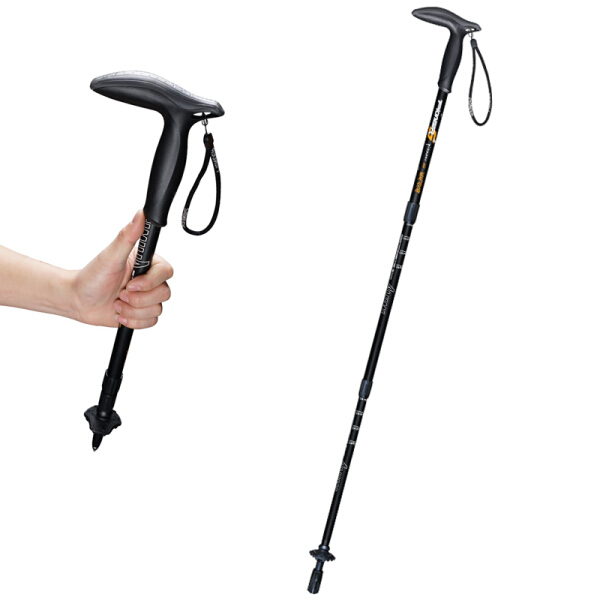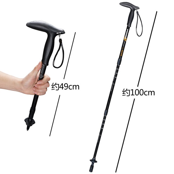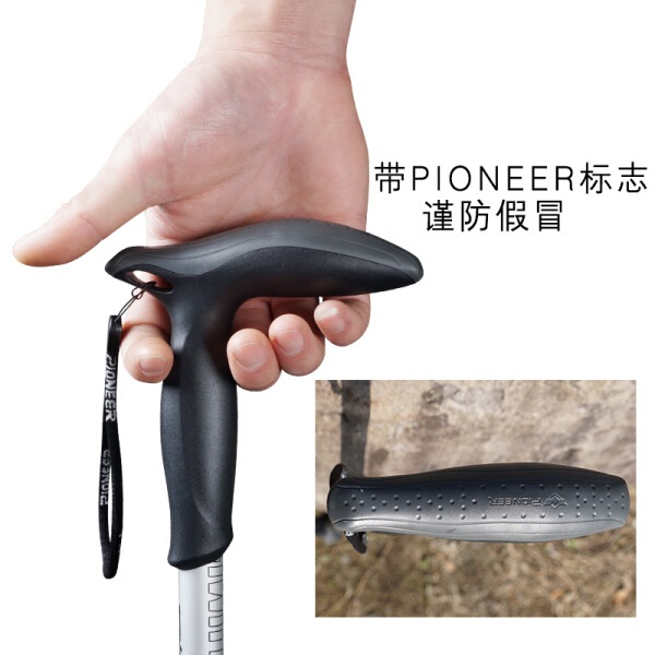 开拓者 PIONEER 狼牙5系 户外登山杖手杖健走杖 拐杖铝合金超短三节伸缩便携徒步老人杖 T型黑色