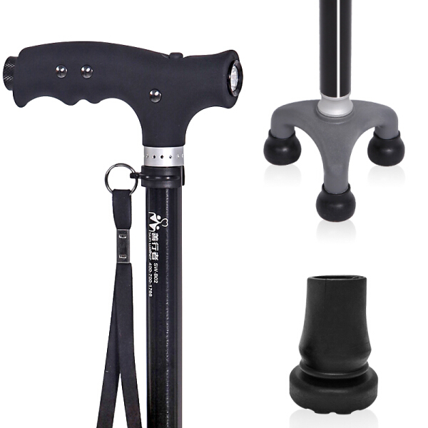 善行者 老人拐杖带灯 可伸缩调节手杖防滑四脚拐棍SW-B02