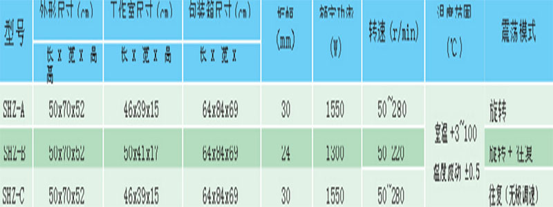 具有往复式和旋转式两种振动功能,可任意选用 水箱、振荡盘等零部件用不锈钢板制成,箱盖采用特种材料