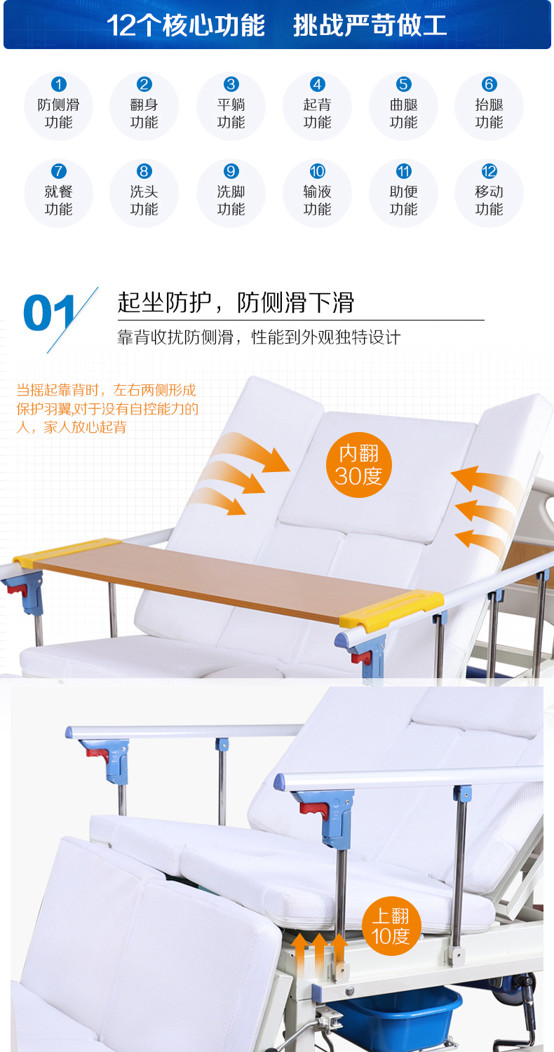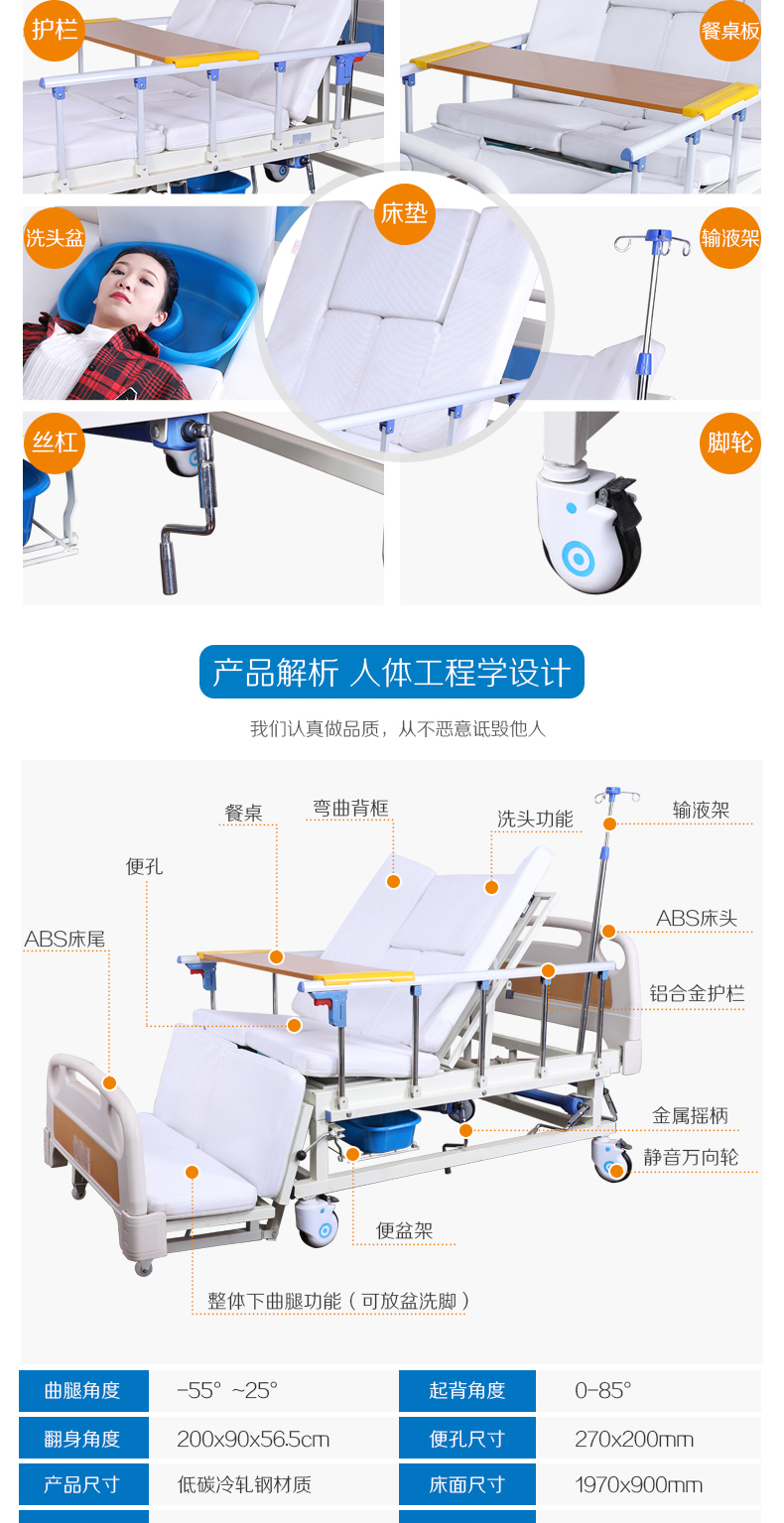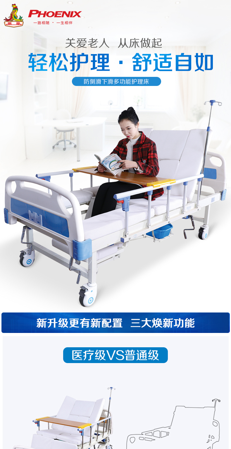 凤凰(Phoenix) 凤凰 护理床家用多功能翻身老人瘫痪病人医疗医用床医院病床带便孔 手动单摇款