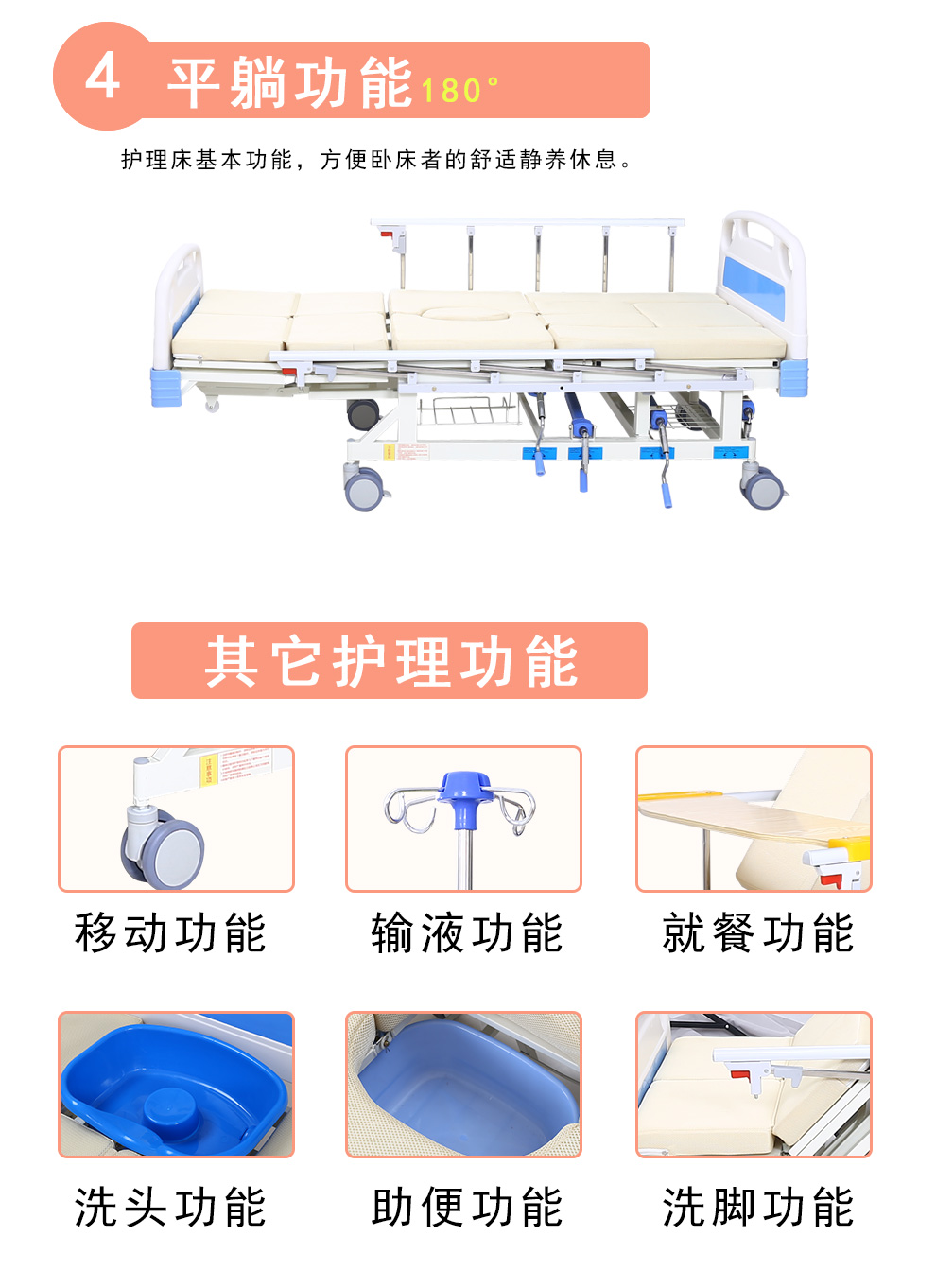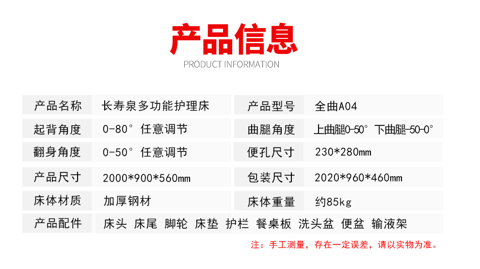 长寿泉 多功能护理床 手动全曲A04(半翻全曲)