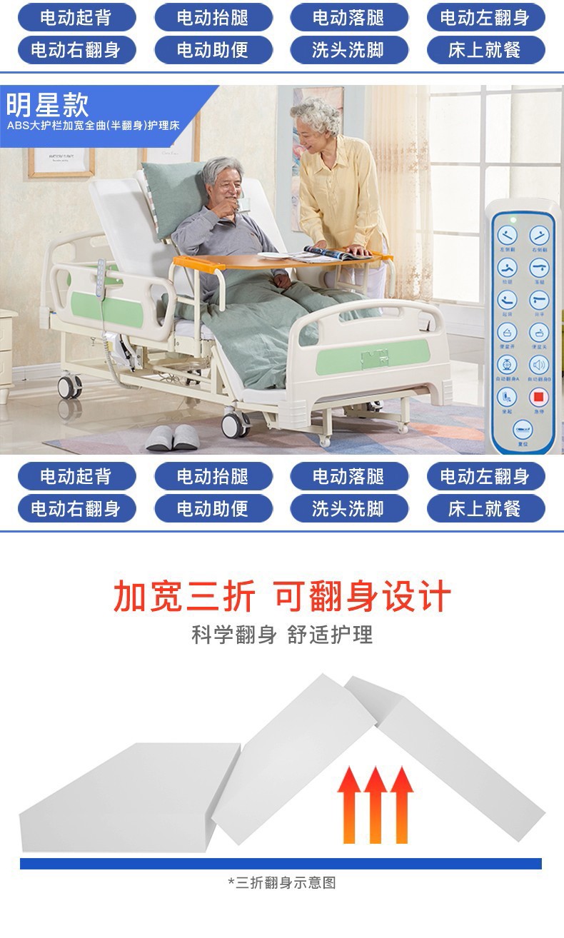 凤凰电动护理床家用 舒适款【电动翻身+全曲】
