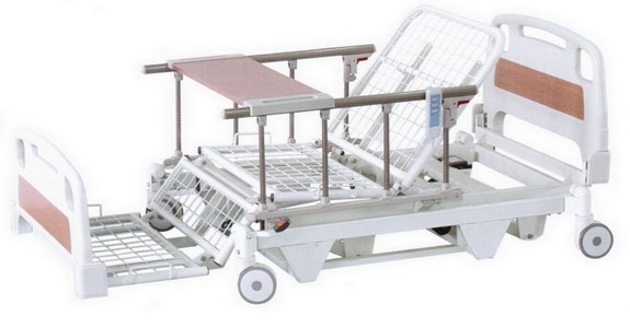 ● 可用手持开关任意调节背部上升角度(80度)和腿部下降角度(100度), 脚部床面处离地面100mm。床面处离地面690mm,还可升 高床面不同 高度。