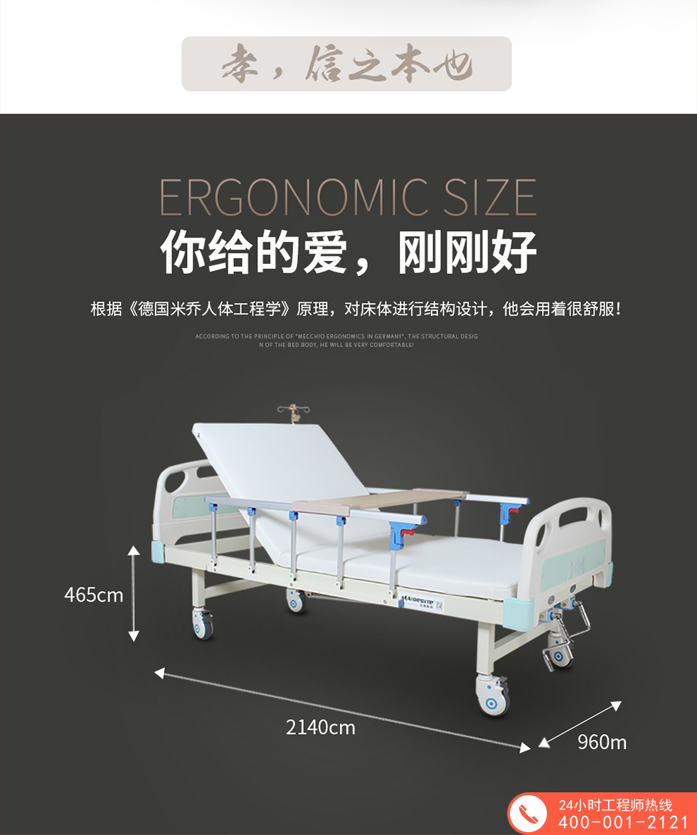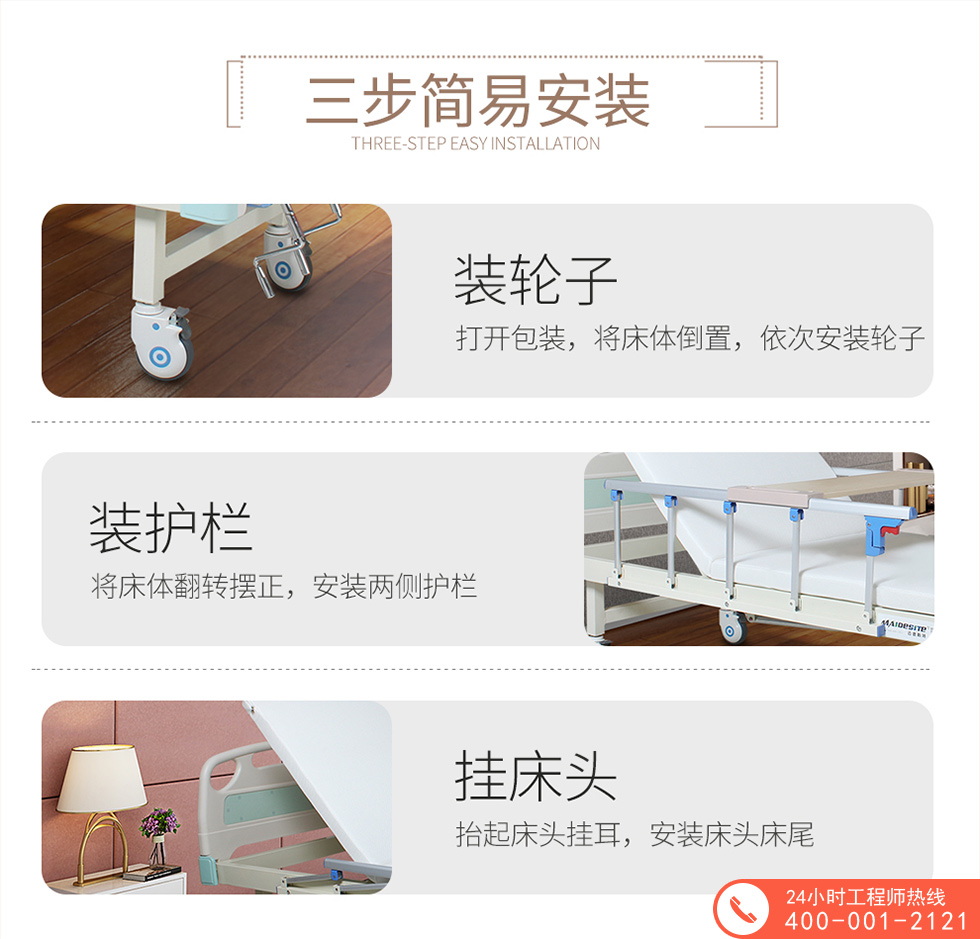 迈德斯特护理床家用医疗床37 心意款瘫痪病人带钢面双摇白床
