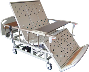 通过控制面板操作,可使病人能够在0-60度任意角度左右侧翻身,翻身后,护理人员可协助病人调整侧睡姿势,使病人侧翻后能够更舒适的休息。病人经常左右翻身可避免褥疮病的发生。对已有褥疮病的患者,经常使其左右侧翻,用温水擦洗。可治停止褥疮病的恶化并有治疗作用。左右翻身功能是长期卧床病人康复保健所需的护理床的理想功能。