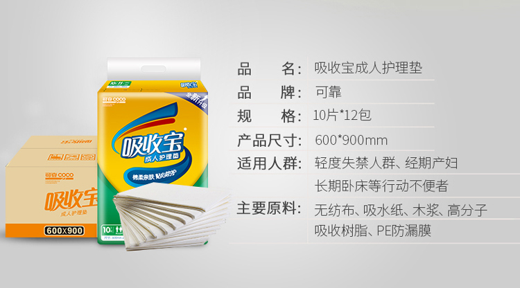 可靠吸收宝 成人护理垫 10片*12包(60x90cm)