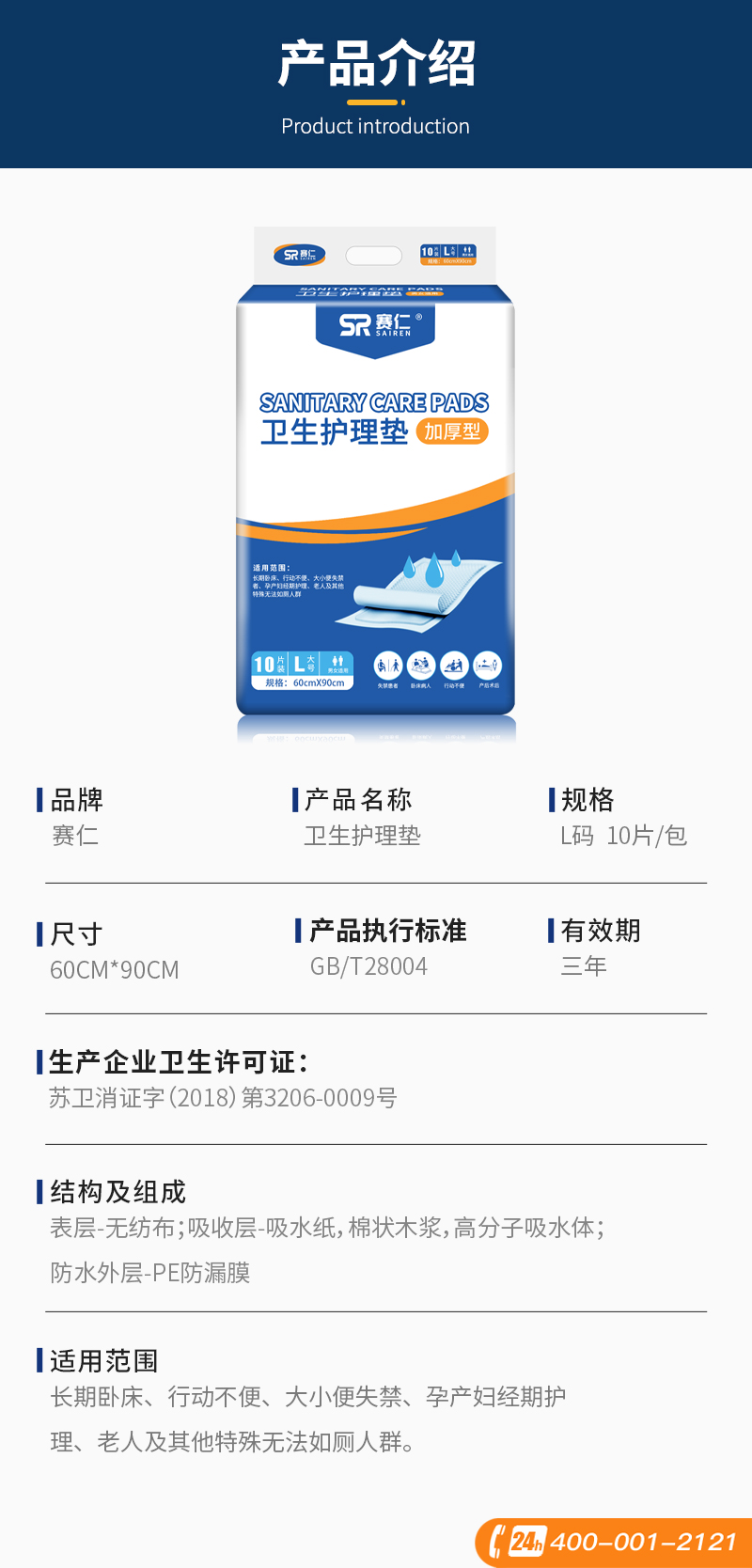 赛仁 卫生护理垫 L大号 60cm*90cm/片 20包/箱 共200片
