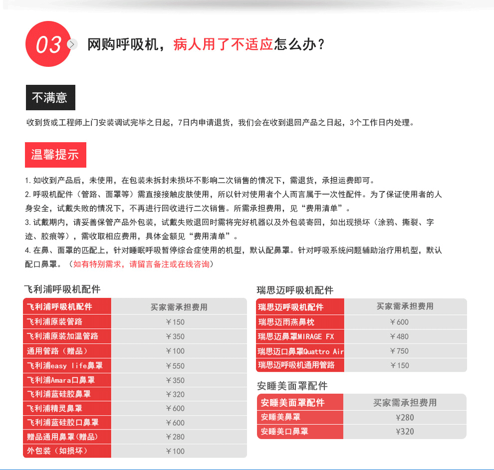 小心佩戴伟康呼吸机面罩;调节带子;更换面罩尺寸或型号。避免面罩过紧。 详情咨询亿家老小商城 |