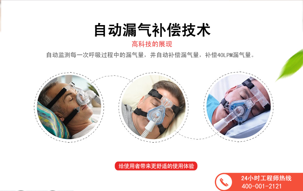 主 要应注意以下几点:呼吸机在使用中应放置低于床平面1/3以下的位置,周围干净、通风,管路尽量放置头部上方或胸部上 面,避免牵拉;每晚使用时间应≥6小 时以上,湿化罐加水量不能超过标准线,使用纯净水;加湿器温度不能与室温反差太大,以免管路产生冷凝水过多造成治疗压力不稳定;面罩(软面罩)要每天 清洁,头带要松紧合适,机器过滤膜使用三个月必须更换一个。 |