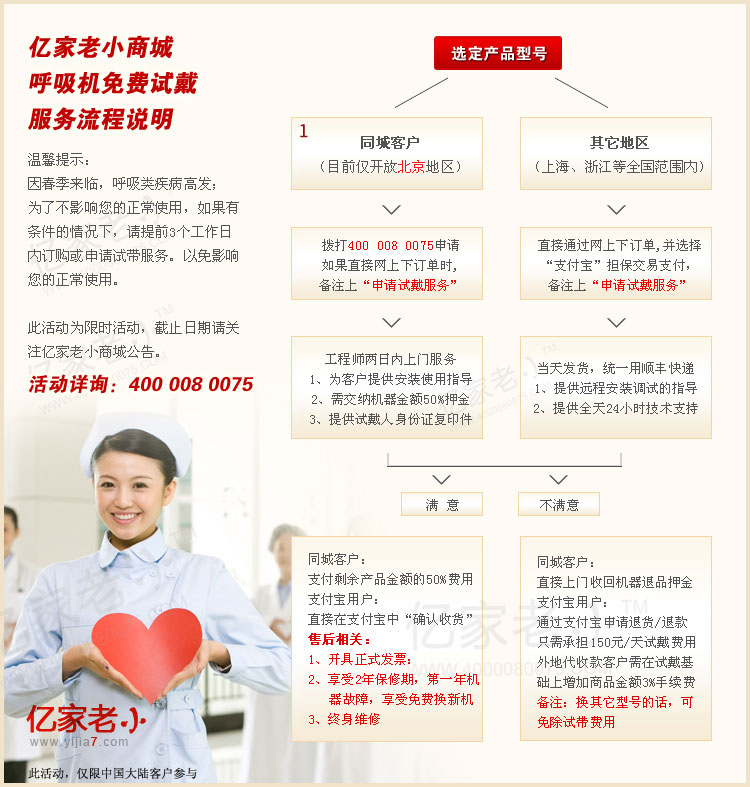 亿家老小商城向您保证所售家用呼吸机,享受二年保修(首年机器质量问题可免费更换新机),终身维修。