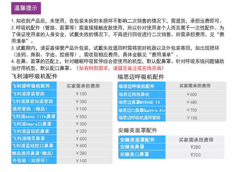售后服务承诺: 亿家老小商城向您保证所售家用呼吸机,享受二年保修(首年机器质量问题可免费更换新机),终身维修。 亿家老小商城还为您提供具有竞争力的商品价格和免运费政策,请您放心购买!