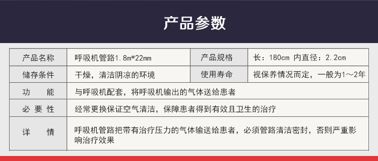 呼吸机通用标准管路1.8m*22mm