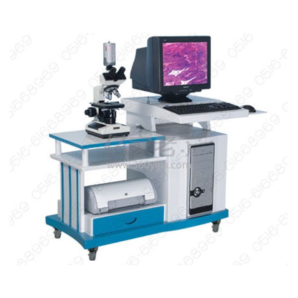 19寸飞利浦纯平显示器,英特尔845GE主板,CPU CD 2.8G,内存2G,500G硬盘,打印机:HP(照片彩喷)。摄像机,分辨率≥420线,图像灰度256级,NOVEL 107(或奥林巴斯显微镜)三目显微镜,及接口,高分辨率图像采集卡,豪华ABS推车。