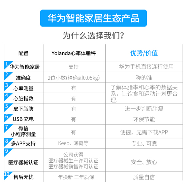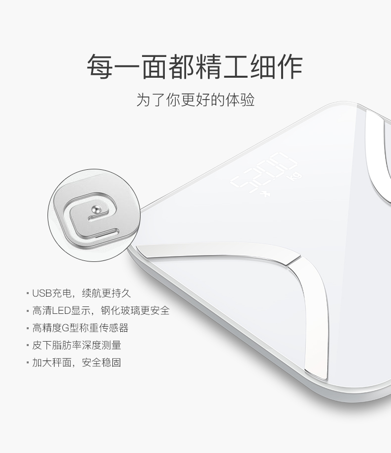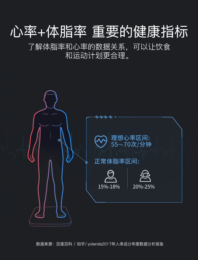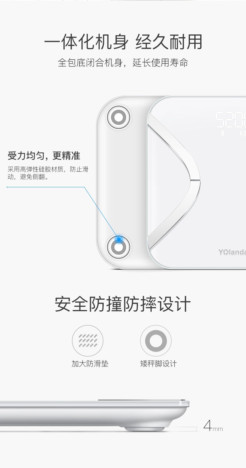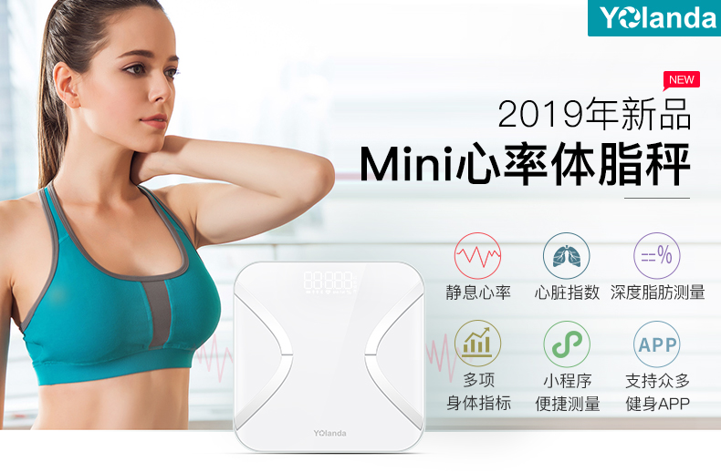 Yolanda 心率体脂秤(mini充电款)微信小程序便捷测量 蓝牙APP控制