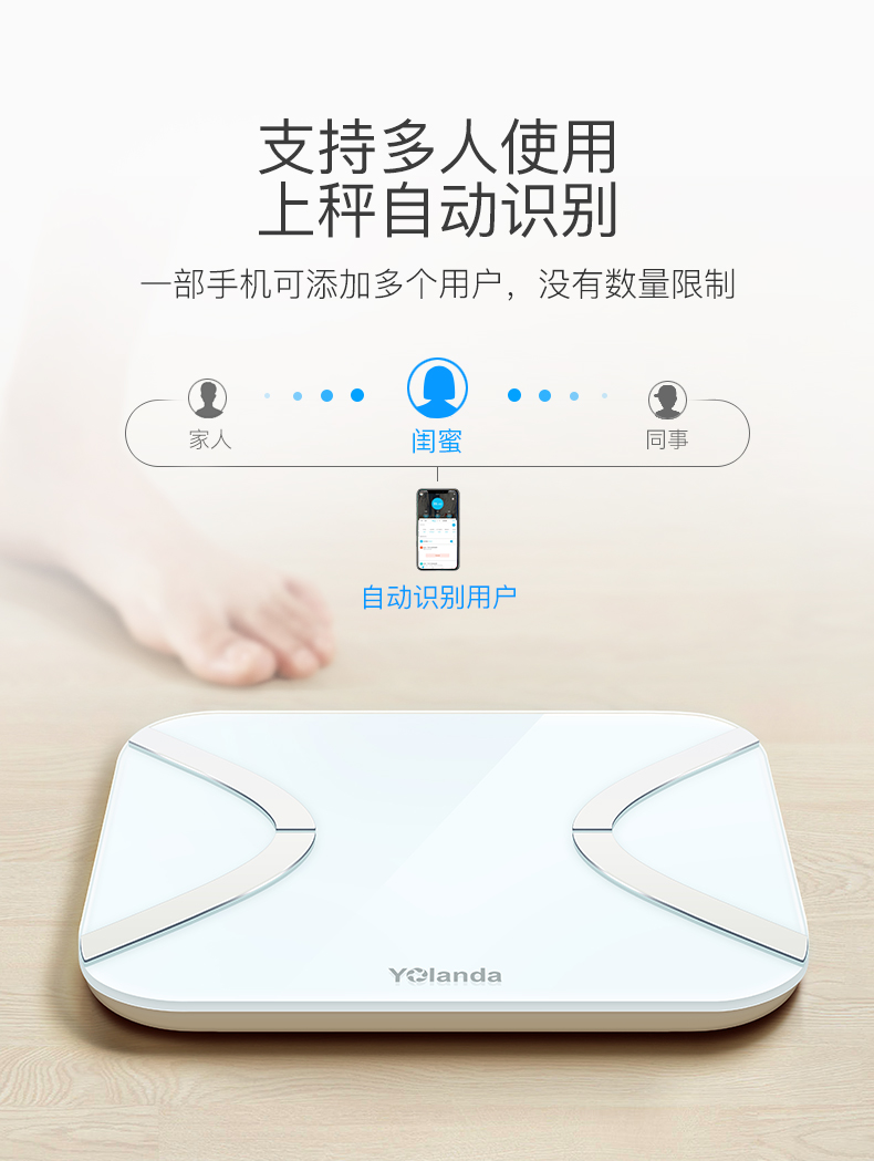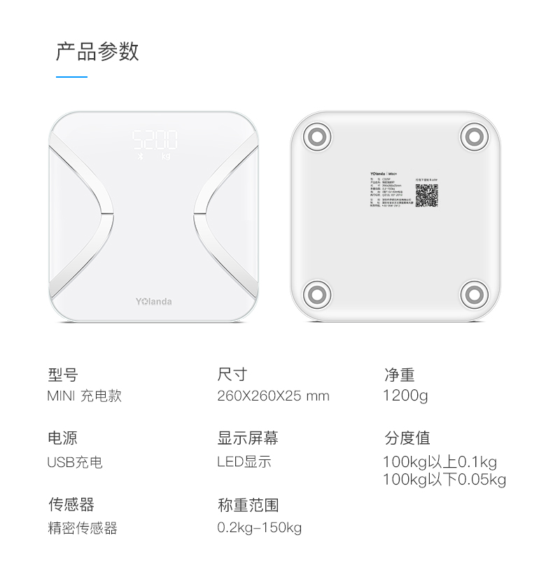 Yolanda 体脂秤(mini充电款)蓝牙APP控制