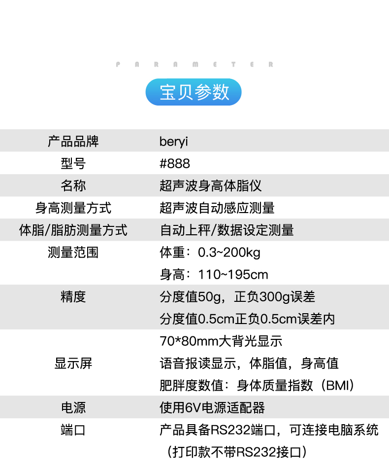 贝雅 声波体脂仪 身高体重秤一体机 智能语音