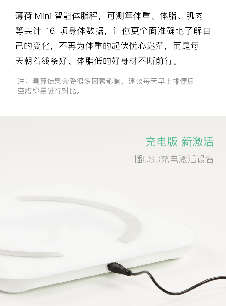 薄荷 体脂秤 Mini白色 16项身体数据 蓝牙连接APP