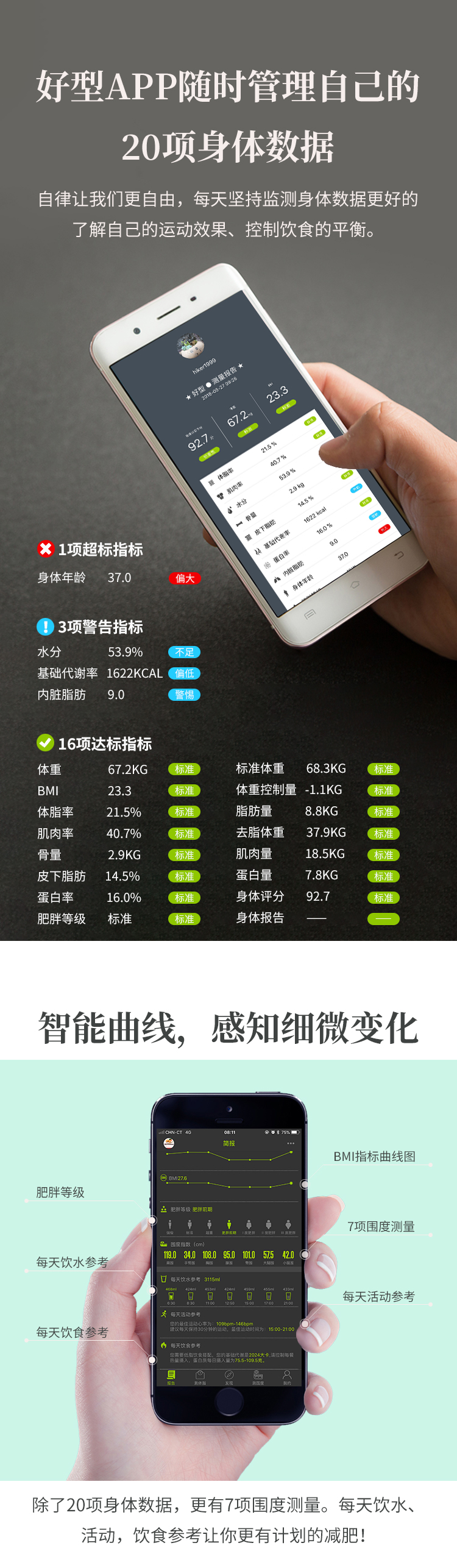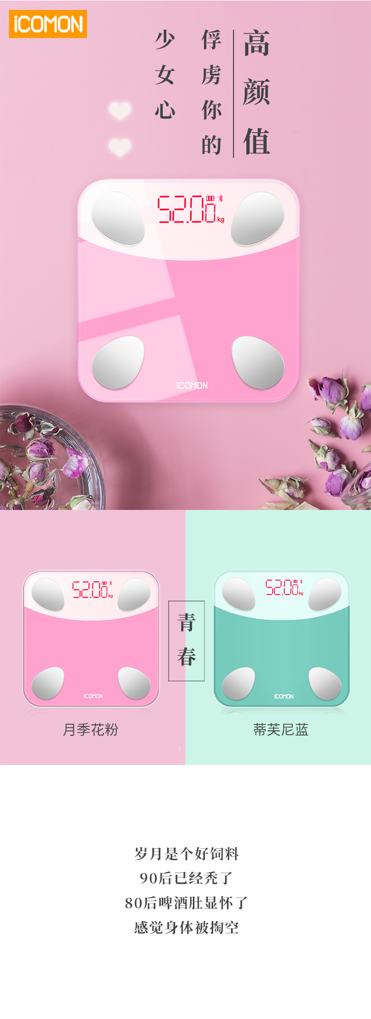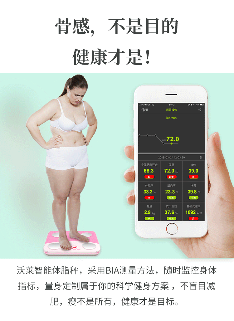沃莱 体脂秤 i9(粉白)智能APP测27项数据